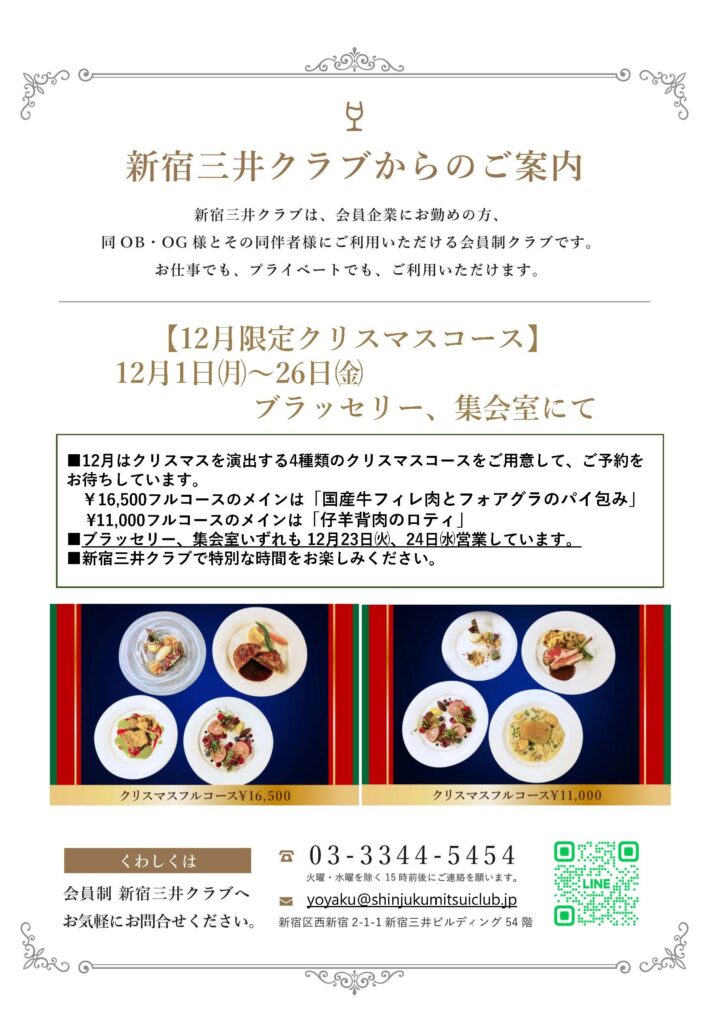 ご予約・お問い合わせはこちら→https://www.shinjukumitsuiclub.jp/reservation/