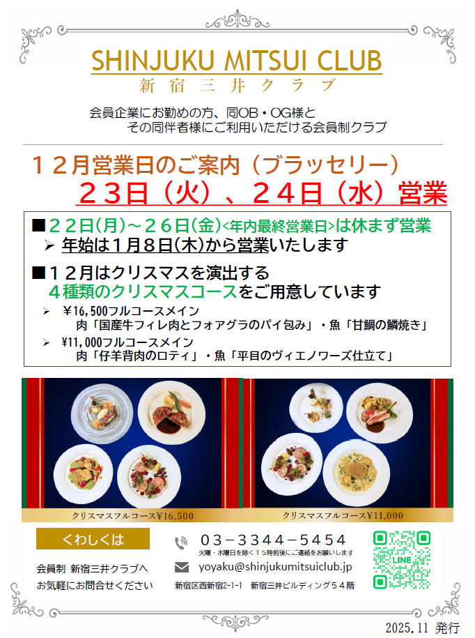 12月23日(火)・24日(水)はクリスマス期間のため営業いたします。